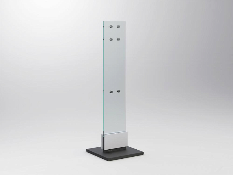 L 565 x W 560 x H 1,780 mm, steel base construction black powder-coated incl. adjustable feet, base cover powder-coated DB703, aluminium facing silver anodised, glass pedestal W 350 x 15 mm made of ESG white glass, swivel parts made of stainless steel. Please note: The adapter plates BMW Wallbox, Flexible Fast Charger, Mode 3 cable and Smart Partner Wallbox must be ordered separately. The wallboxes / display elements used must also be ordered separately. These are not included in the scope of delivery.