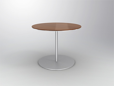 Consultant table, silver laminated base plate and table leg, table board veneered in american Walnut with glass carrier plate.