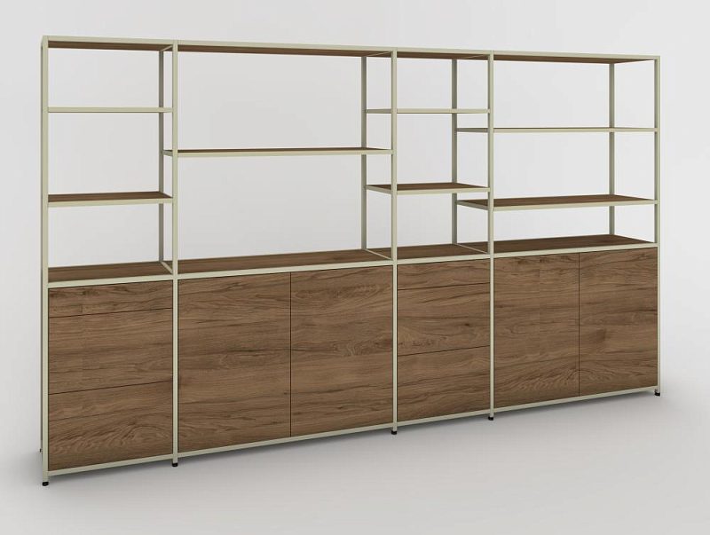 The shelving system is an option to make the various areas more lively, cozy and exclusive, and could also serve as dividers to improve the level of privacy.