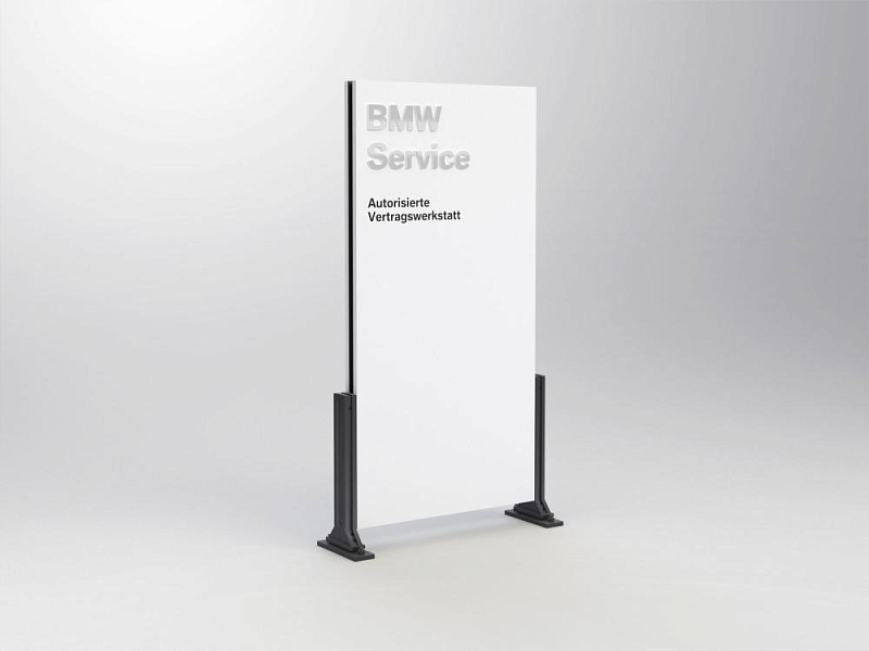 "BMW Service" = acrylic with stainess steel in 3D optics, incl. LED illumination