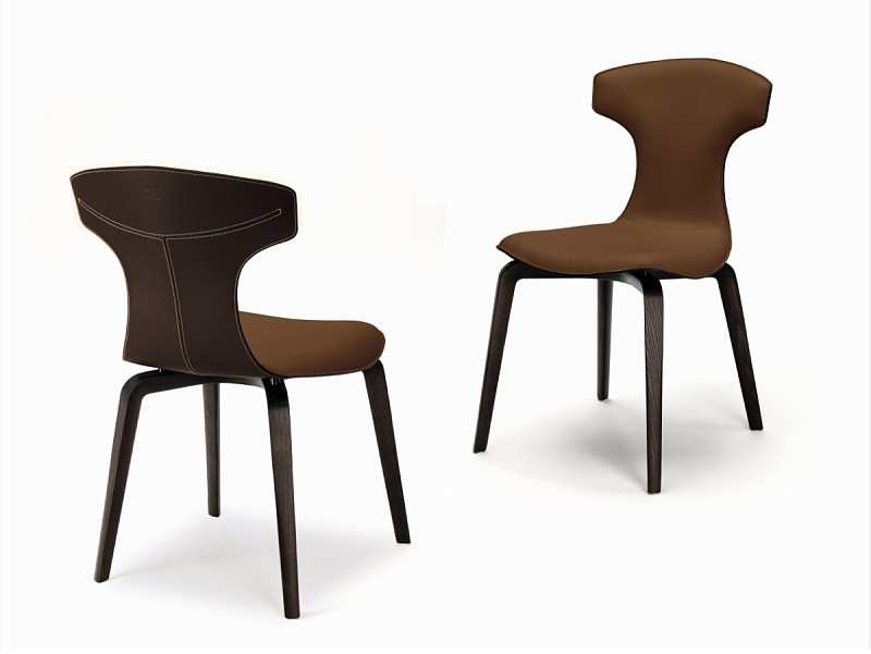 The chair features absolutely perfect craftsmanship in wood and leather. A solid wood frame made of ash comes together with an ergonomic seat-shell backrest composition, which is covered with two different types of leather.