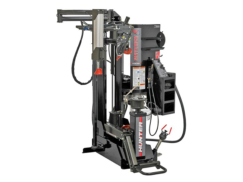 Tyre fitting machine for fitting and removing UHP and run-flat tyres with a rim diameter up to 34 inches. The machine is operated using a control panel where all control levers and control buttons are intuitively arranged. Manually positioning the upper press-off plate on the rim flange initiates automatic positioning of the mounting head and the press-off plates on the wheel rim. In addition, hydraulic and proportional control enables extremely precise operation of the machine.