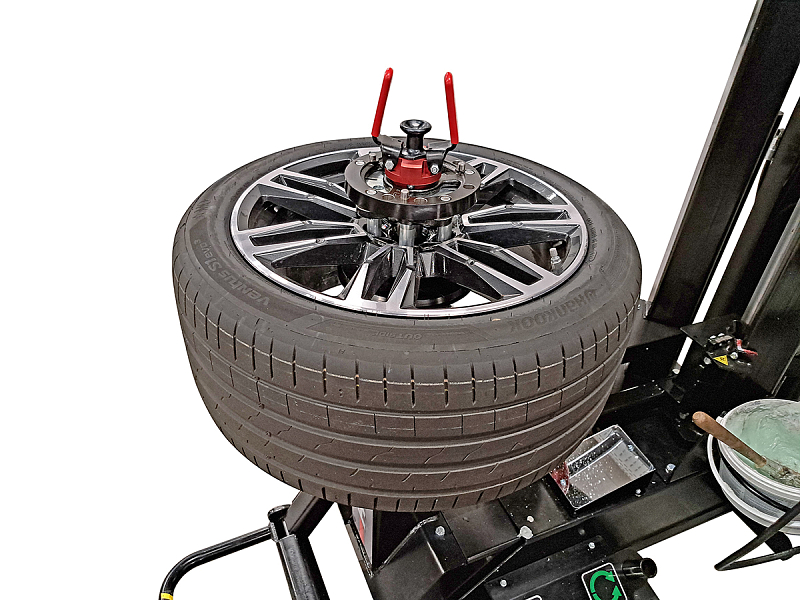 The combination of automatic positioning of the mounting head and press-off plates, the continuously adjustable rotational speed of the wheel rim and the reduced number of control levers makes the removal and installation procedure much easier. Colour-coordinated operating instructions on the mounting head and control panel make operation even easier, so that beginners or workshop employees who rarely fit tyres can find their way around the tyre fitting machine relatively fast.